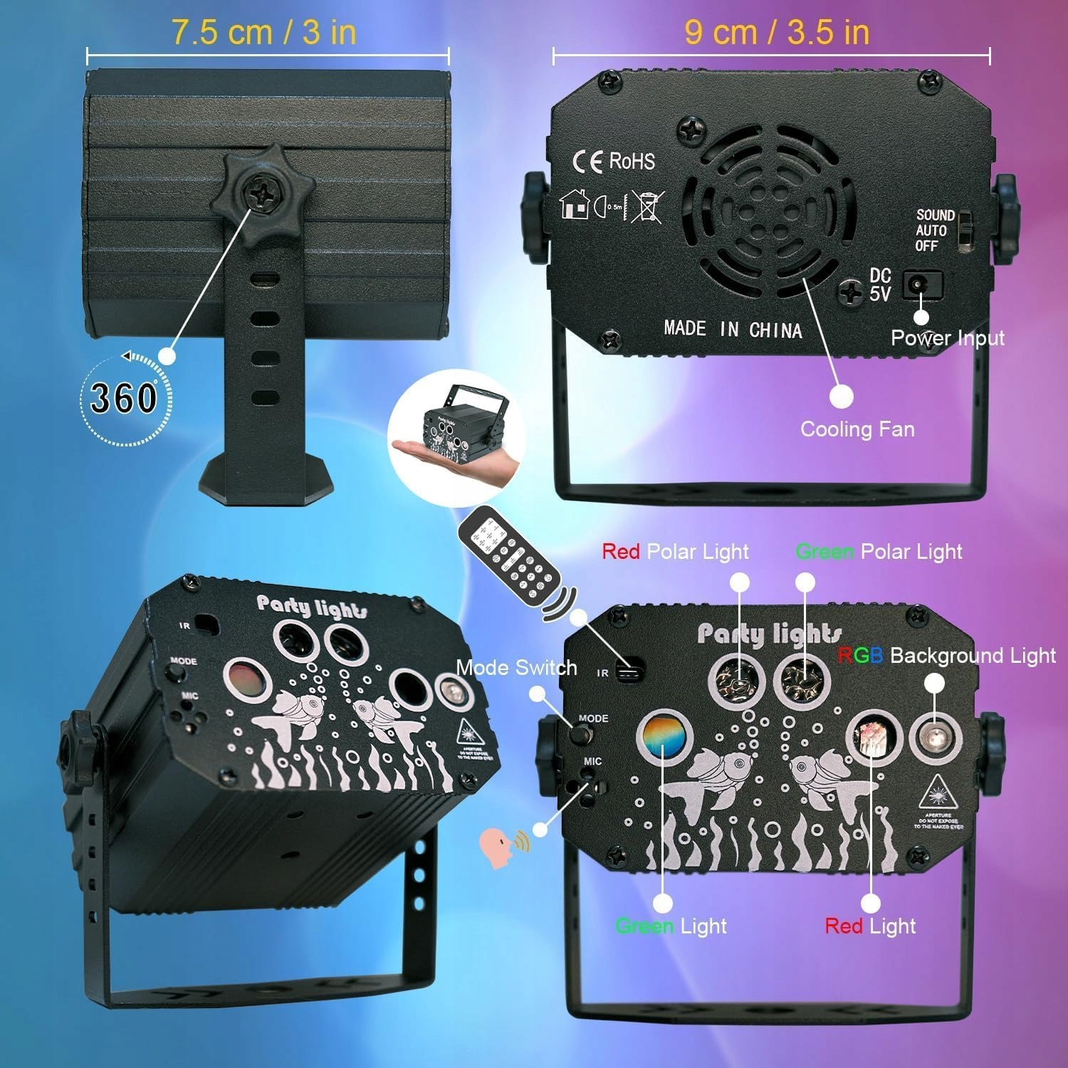 ✅Світлодіодні дискотечні ліхтарі з дистанційним керуванням і датчиком звуку | 61 ефект | Сценічний проектор | targetone