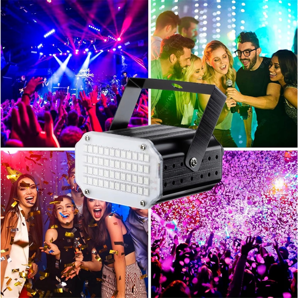 Відкрийте для себе потужний стробоскоп, оснащений 48 енергійними світлодіодами RGB, які створять дивовижні візуальні ефекти на будь-якій вечірці! Професійний алюмінієвий корпус забезпечує чудове охолодження та довговічність, перевершуючи традиційні пластикові конструкції. Завдяки мультиплексним режимам роботи, включаючи звукову активацію та дистанційне керування, ви маєте повний контроль над світловим шоу. Це ідеальне рішення для клубів, дискотек, весіль і приватних заходів.