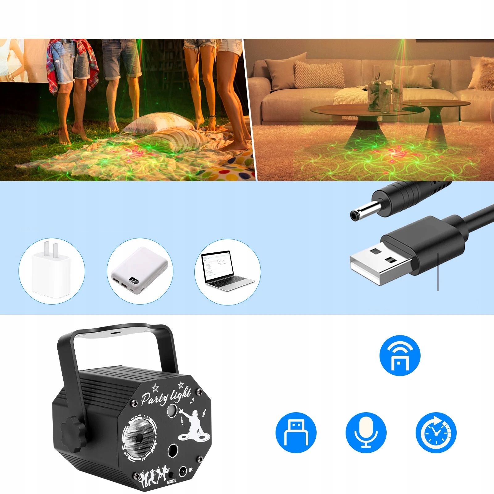 Оновлена версія вечіркових лазерів, здатна генерувати 72 комбінації зображень, створюючи чудову сценічну атмосферу завдяки поєднанню мультиефектів і проекції з високою роздільною здатністю роздільна здатність.