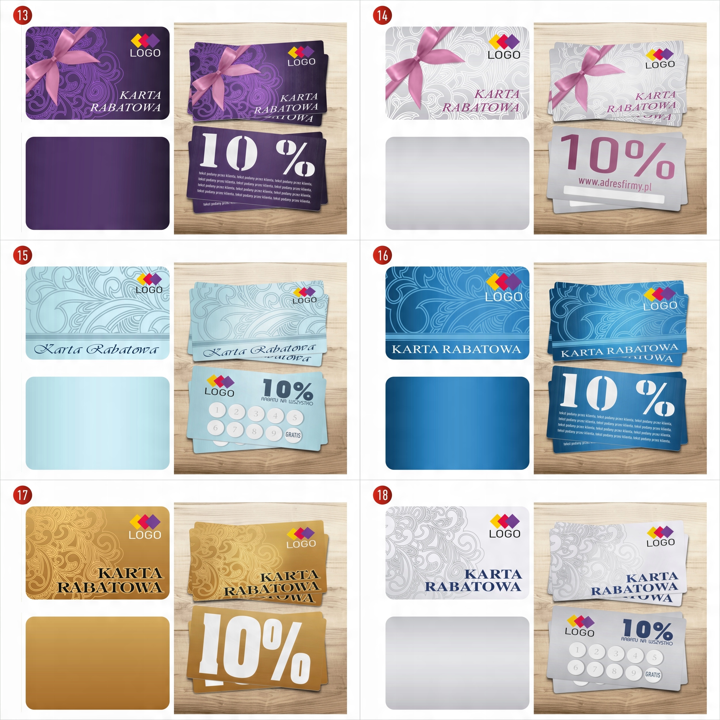 Ми друкуємо дисконтні картки на крейдованому папері 350 г. Стандартні картки мають закруглені кути. Ми покриваємо їх з одного боку, щоб підвищити їх довговічність і естетичність.
