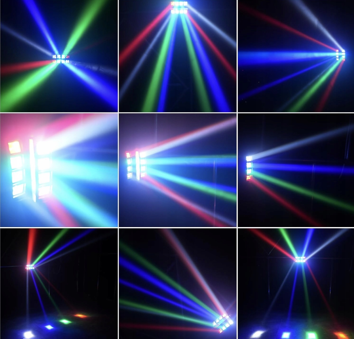 8 світлодіодів та кольорів RGBW, унікальні зміни яскравості, кольори градієнта та режими стробу забезпечують яскраві та яскраві ефекти декорацій; І не тільки: Вісім яскравих променів Світло забезпечує професійний досвід.