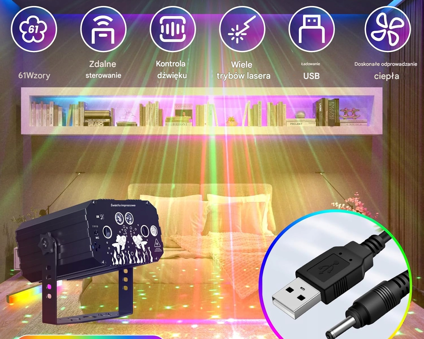 Дискотечне освітлення, активоване звуковими сценічними ефектами 61 USB -конструкції