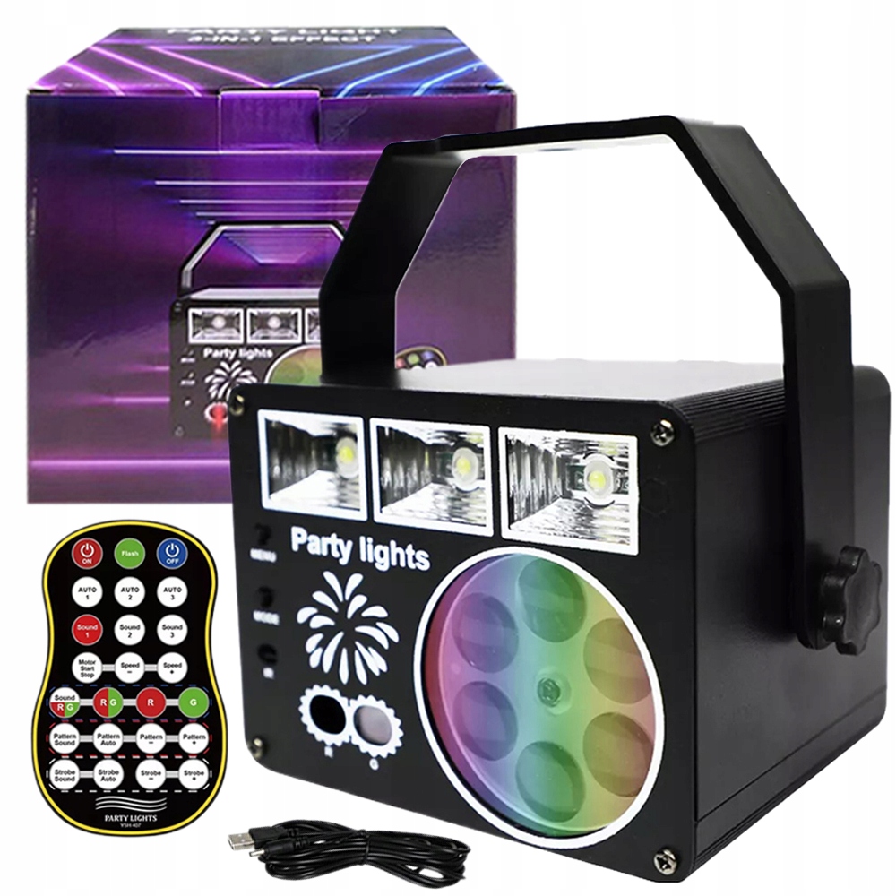- Цей оновлений дискотечний ліхтар 3 в 1 містить обертовий стільниковий ліхтар, зелене та зелене світлодіодне світло та біле світлодіодне світло зі стробоскопом/УФ-хвилею.