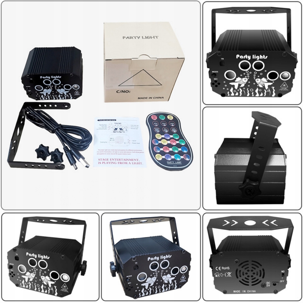 - RGB Laser 3 в 1 має 5 режимів роботи (строб, автоматичний, голосовий контроль, лазер, світлодіод) і пропонує різноманітні кольорові стилі.