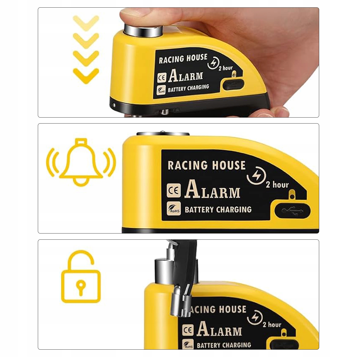Вбудований датчик вібрації та руху запускає сигнал тривоги 110 дБ, щойно хтось намагається зрушити з місця велосипед чи мотоцикл. Ідеальний захист вдень і вночі.