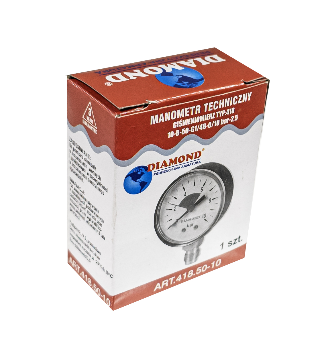 ДИСКОВИЙ МАНОМЕТР 0-10 БАР РАДІАЛЬНИЙ ВЕРТИКАЛЬНИЙ 1/4" DIAMOND