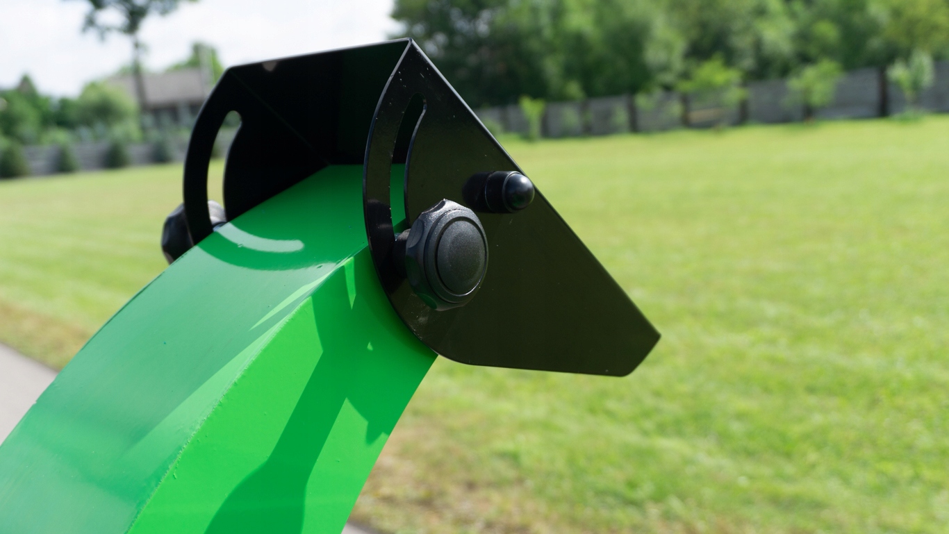 Пристрій оснащений триточковою зчіпкою до трактора.