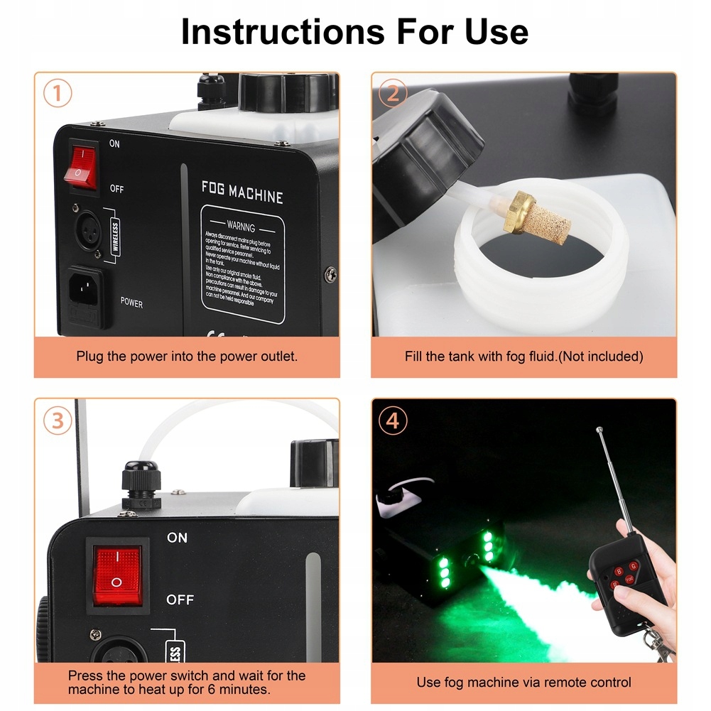 【Ідеальна продуктивність】: Туманна машина потужністю 1500 Вт стане вашим найкращим творцем атмосфери для всіх ваших подій! Завдяки вбудованому теплогенератору нагрів займає близько 60 секунд. Просто насолоджуйтесь моментом туману миттєво!