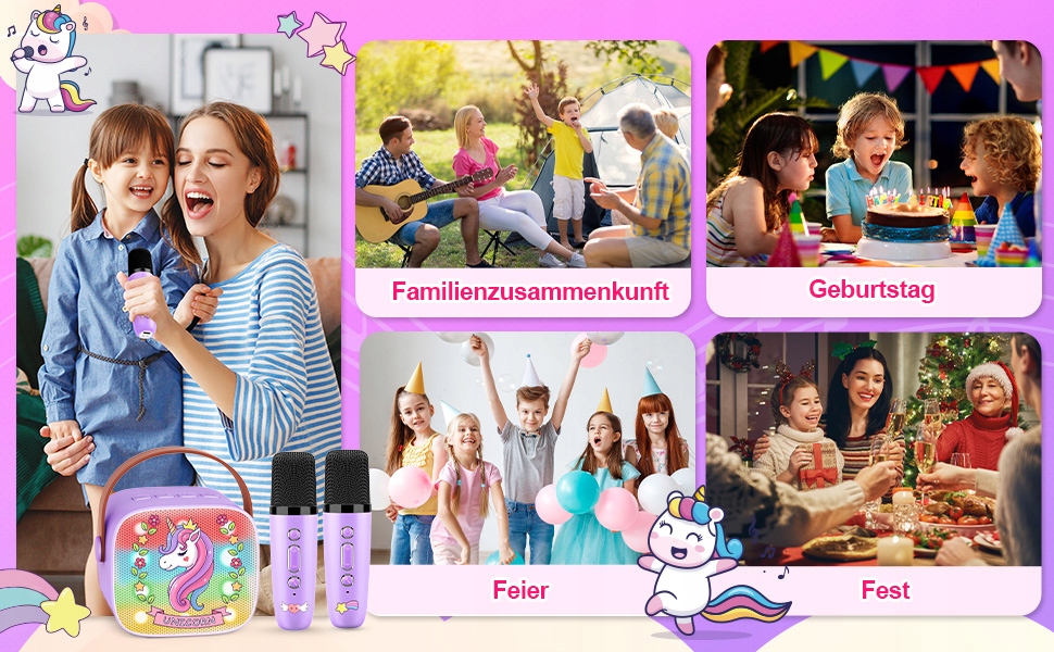 - Красива упаковка та милий мотив єдинорога — ідеальний подарунок на день народження, Різдво чи інше свято. За допомогою цього Bluetooth-караоке ви можете насолоджуватися музикою зі своїми дітьми, родиною та друзями!