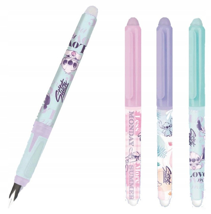 Повний набір з 3 пір'яних ручок Disney Fashion STITCH пастельних кольорів - фіолетовий, синій, бірюзовий! Ці ручки були розроблені для дітей, які навчаються писати, пропонуючи зручність і комфорт використання. Завдяки чорнилу, що стирається, і гумці на кінці ручки помилки можна легко виправити нагріванням. Кожна ручка оснащена наконечником розміру М, який забезпечує плавне письмо.