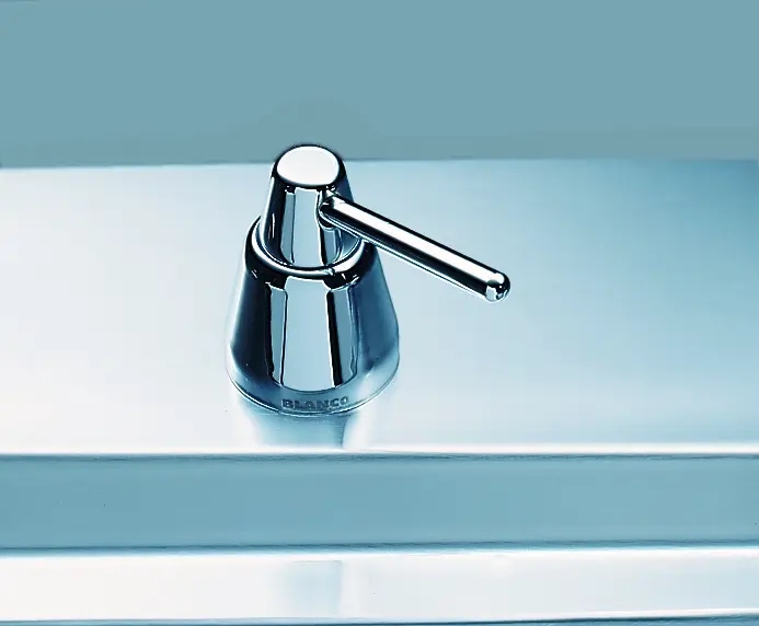 Дозатор BLANCO TIGA, виготовлений з високоякісних матеріалів, гарантує надійність і стійкість до щоденного використання. Його класичний зовнішній вигляд гармонує з різними стилями обробки, від сучасних до більш класичних облаштувань кухні.