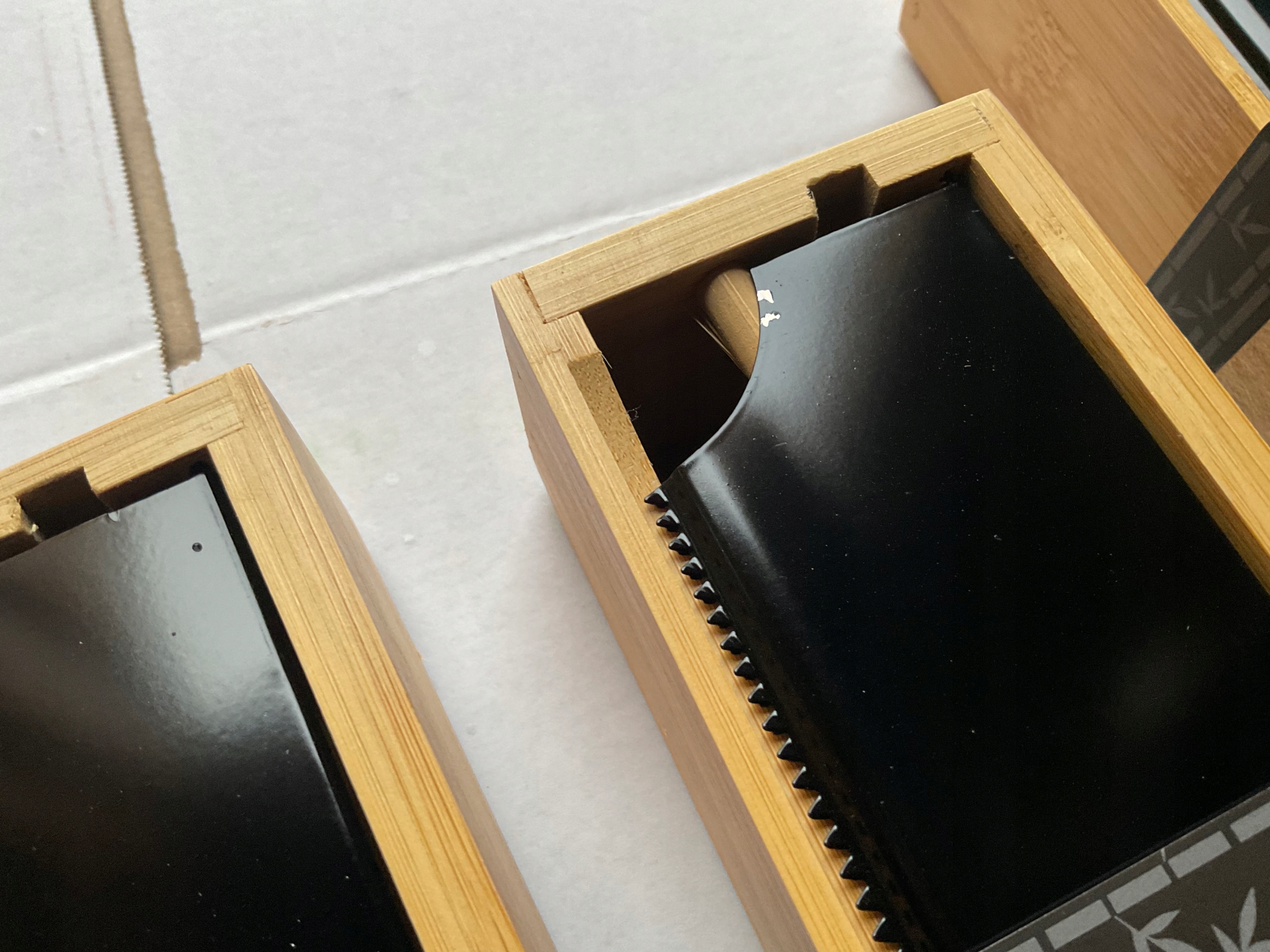 Вихідний отвір закінчується зубцями для полегшення рівномірного розриву.