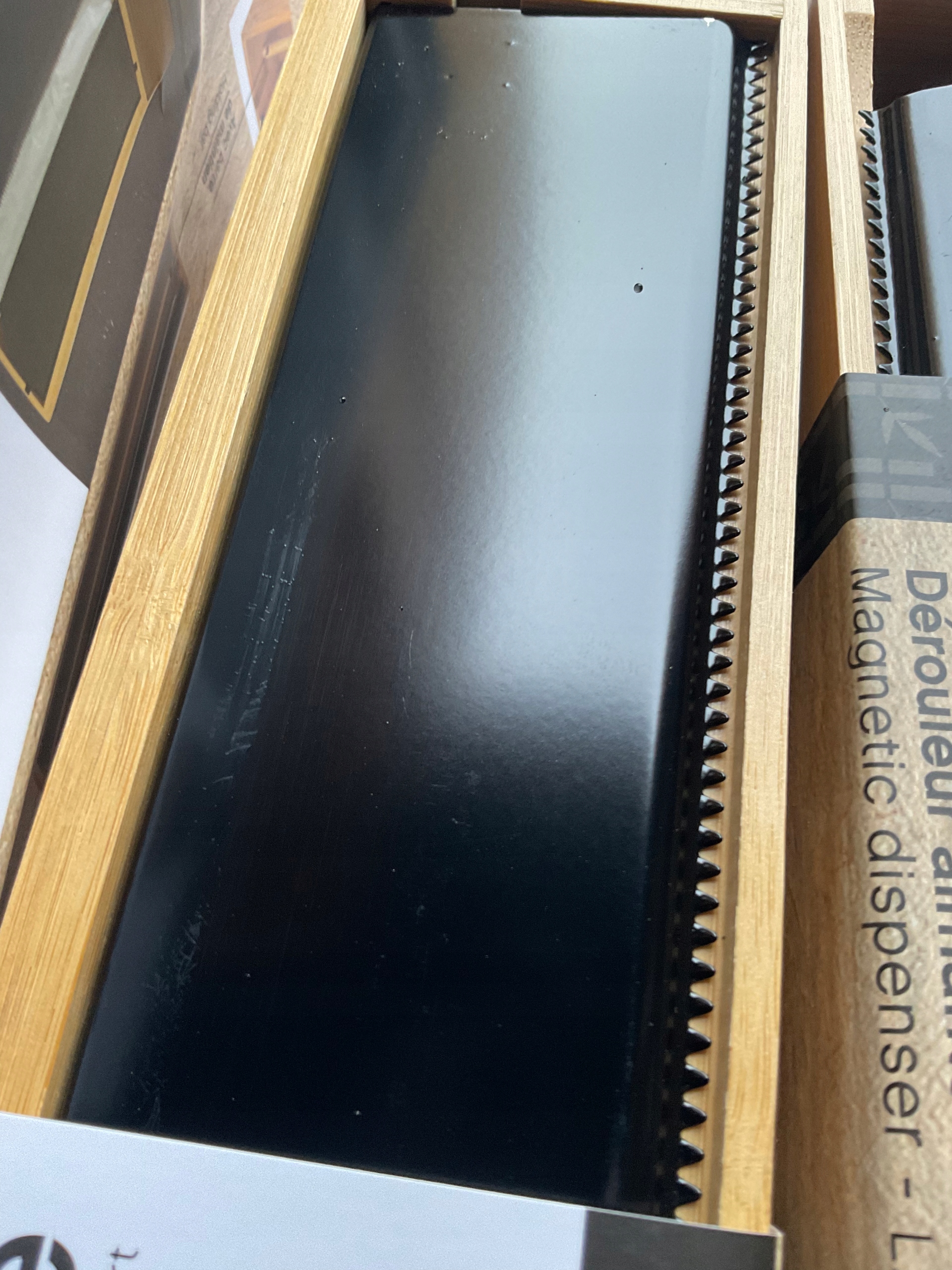 Практичний диспенсер для їжі або алюмінієвої фольги. Можна прикріпити за допомогою магніту, наприклад, до холодильника.