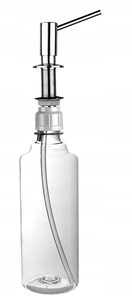 Дозатор рідини, встановлений на стільницю, раковину або умивальник. Дозуючий елемент виготовлений з латуні, покритий хромом. Колір – хром.