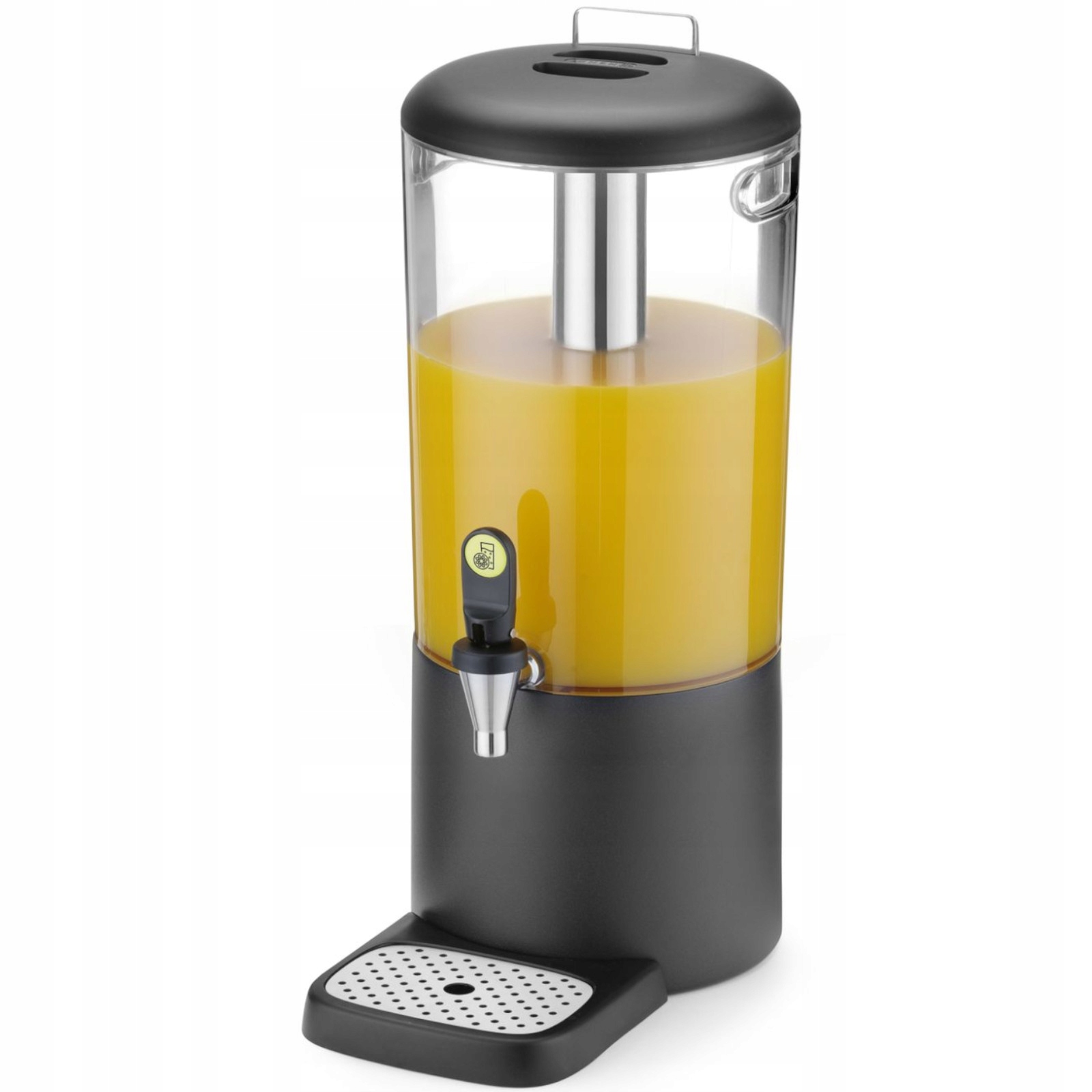 Диспенсер для напоїв HENDI поєднує практичну функціональність з естетичним професійним виглядом. Знімна сталева охолоджуюча труба для льоду з нержавіючої сталі дозволяє зберігати напій при низькій температурі. Дозатор оснащений протикрапельним краном, розташований на відстані 130 мм від основи, і знімним крапельним піддоном з корпусом відповідного кольору. Швидке збирання та розбирання забезпечує легку гігієну. Прозорий корпус дозволяє легко контролювати рівень рідини.
