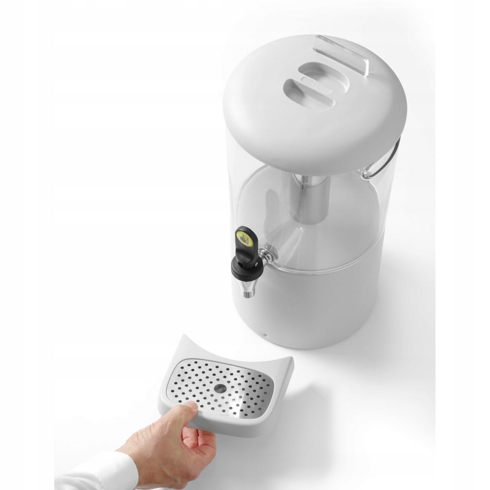 Диспенсер для напоїв HENDI поєднує практичну функціональність з естетичним професійним виглядом. Знімна сталева охолоджуюча труба для льоду з нержавіючої сталі дозволяє зберігати напій при низькій температурі. Дозатор оснащений протикрапельним краном, розташований на відстані 130 мм від основи, і знімним крапельним піддоном з корпусом відповідного кольору. Швидке збирання та розбирання забезпечує легку гігієну. Прозорий корпус дозволяє легко контролювати рівень рідини.