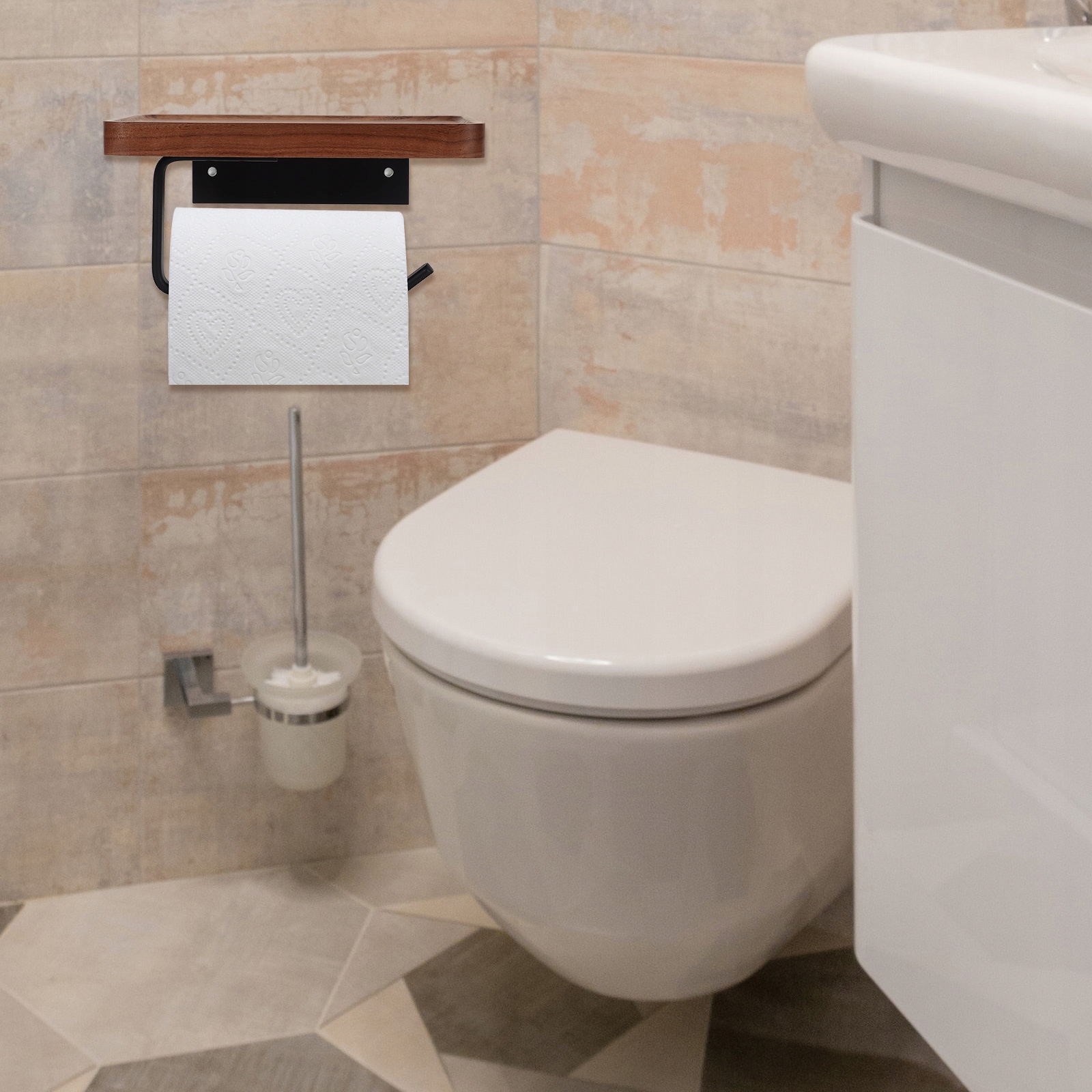 ✅Натуральні та міцні матеріали: цей тримач для туалетного паперу виготовлено з горіхового дерева та металу.