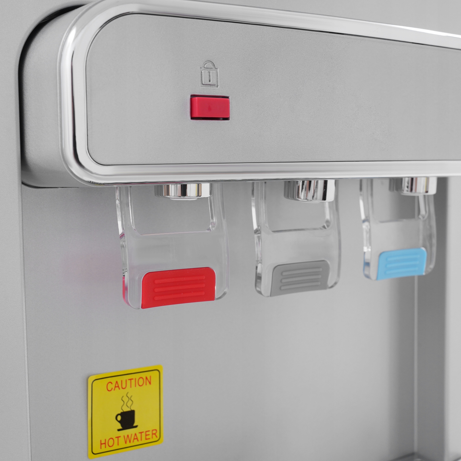 - Настроювані параметри температури: Оснащено окремою конструкцією з трьома носиками для гарячої, кімнатної температури та холодної води, що дає змогу налаштувати ваш досвід пиття. Незалежно від того, спекотний літній день чи морозна зимова ніч, ви можете втамувати спрагу прохолодною крижаною водою, заспокійливою водою кімнатної температури або гарячою парою.