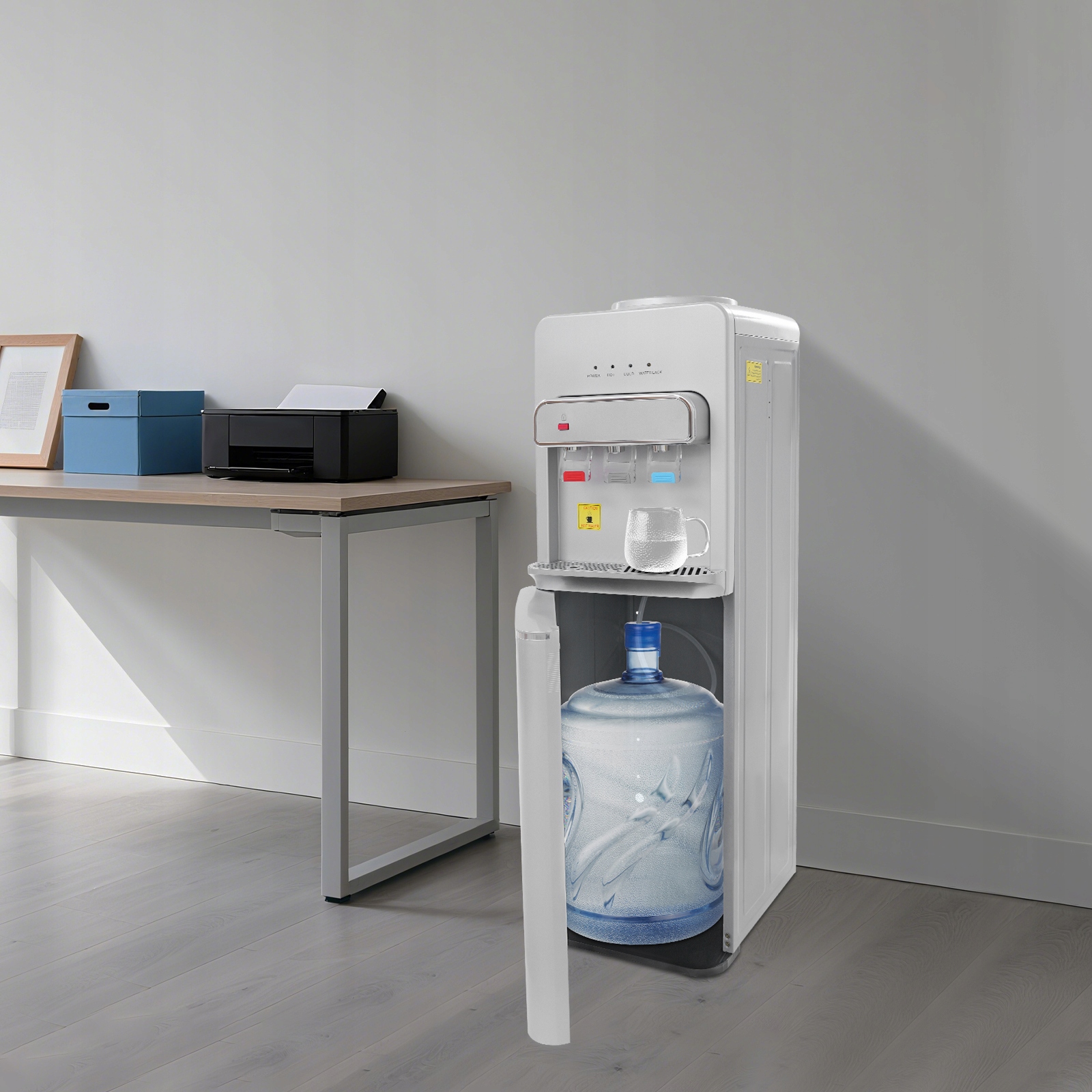 - Цей диспенсер для води з нижнім завантаженням забезпечує зручну функціональність сучасних домівок і офісів. Пляшка з водою, розташована біля основи, економить простір і зберігає чистий, обтічний вигляд. Просте натискання кнопки забезпечує постійний м’який потік води – ідеально підходить для сімейних зустрічей або ділових зустрічей – і служить надійним супутником, який покращує ваше повсякденне життя.