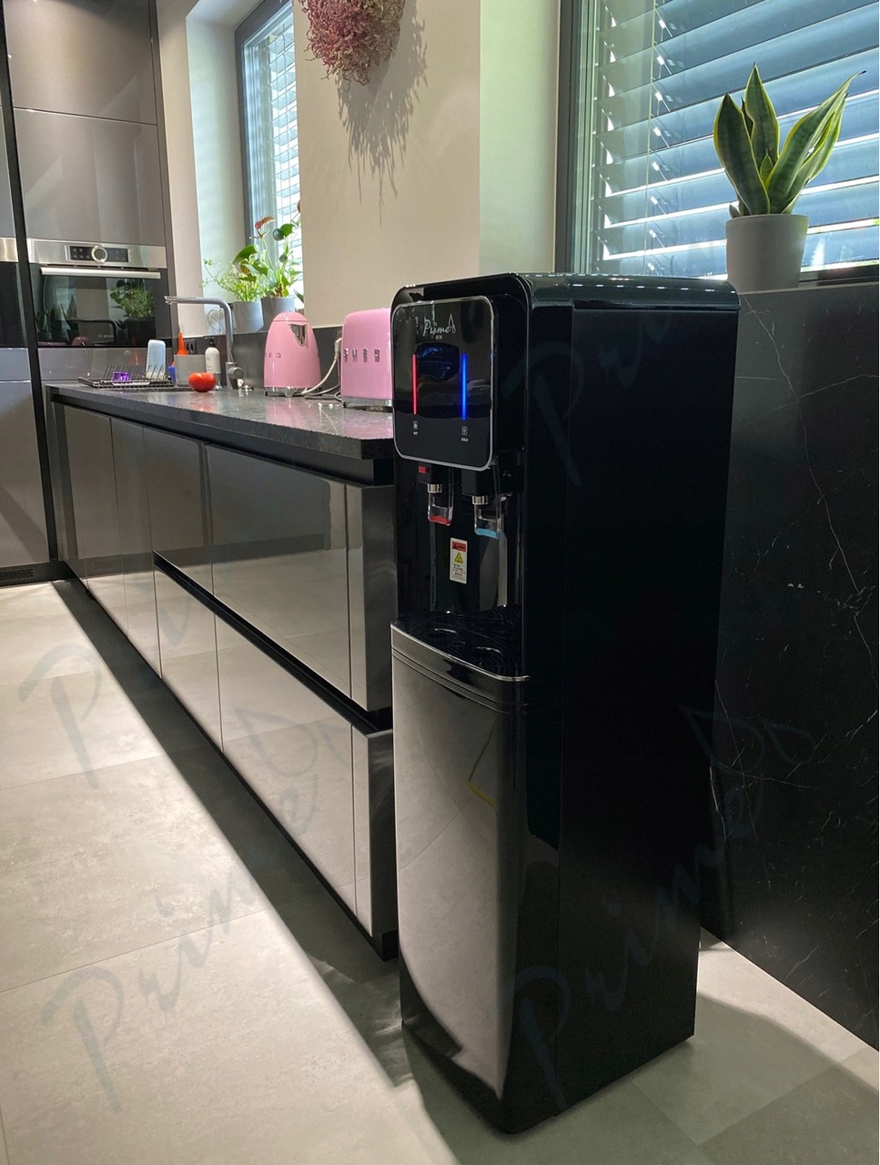 Диспенсер підключений до водопроводу з встановленим водяним фільтром. Забезпечує фільтровану питну воду двох типів: холодну / гарячу.