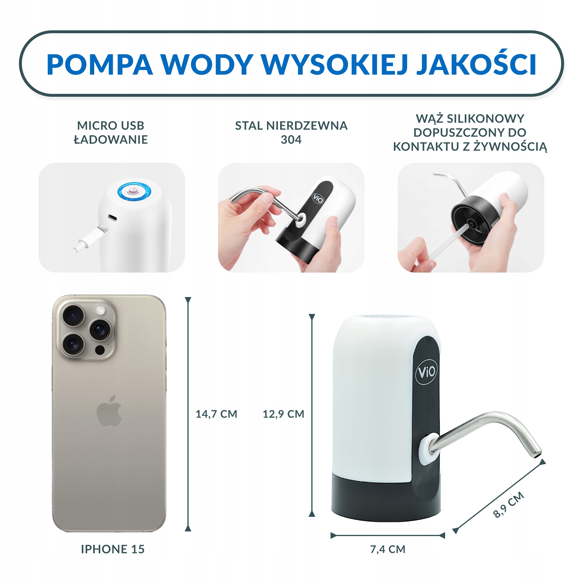 Електрична помка для заливання вода Vio E7 -це сучасний пристрій з USB -кабелем, який забезпечує зручний і без проблем доступу до пляшкової води. Завдяки цьому насоса, наливання води стає швидким, зручним та гігієнічним. Ідеально підходить для дому, офісу, кемпінгу чи подорожей.