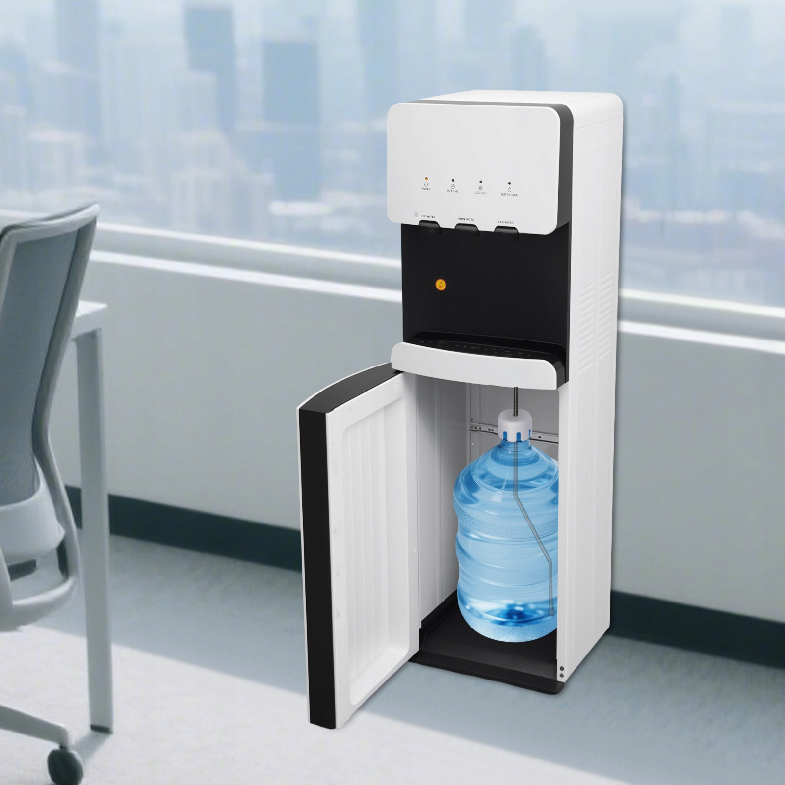 Завдяки зручним функціям цей диспенсер для води з нижнім завантаженням є ідеальним вибором для сучасного дому та офісу. Блокування від дітей, захист від сухого кип’ятіння та численні вентиляційні отвори забезпечують більший спокій під час використання. Розміщуючи пляшку з водою внизу пристрою, цей диспенсер для води економить простір і підтримує чистий і естетичний вигляд. Візьміть цей продукт, щоб насолодитися вишуканим способом життя зараз!