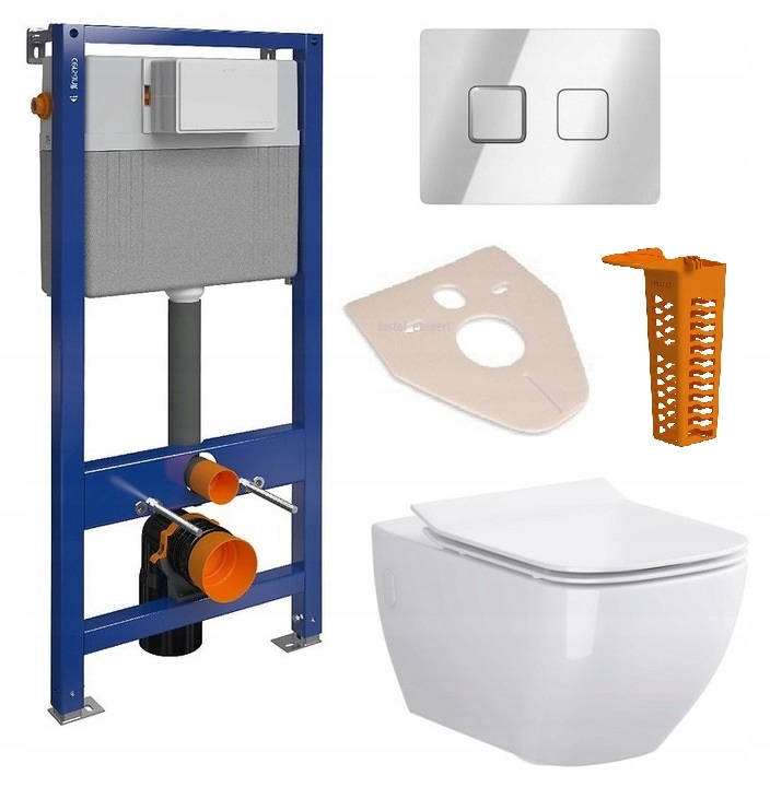 Суцільна рама виготовлена з масивних профілів 40 мм з можливістю повороту ніжок. У комплекті використовуються функціональні рішення: система QUICK FIX, чотиристороння подача води, регульована зливна труба. Завдяки використанню інноваційної технології CleanOn та гігієнічної системи FRESH SYSTEM чаша завжди залишається чистою та безпечною у використанні. Економію води забезпечить економічна система змиву: 2/4 або 3/5 л. Високоякісний пневматичний клапан забезпечує стабільну та повторювану роботу. Клапан оснащений силіконовою прокладкою, що забезпечує герметичність набору.