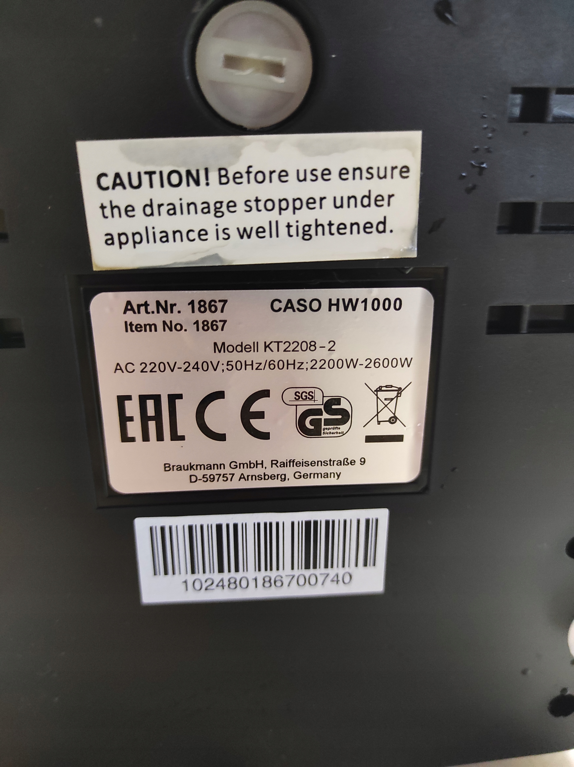 - Назва виробника: Caso 1867 HW 1000-Turbo li>