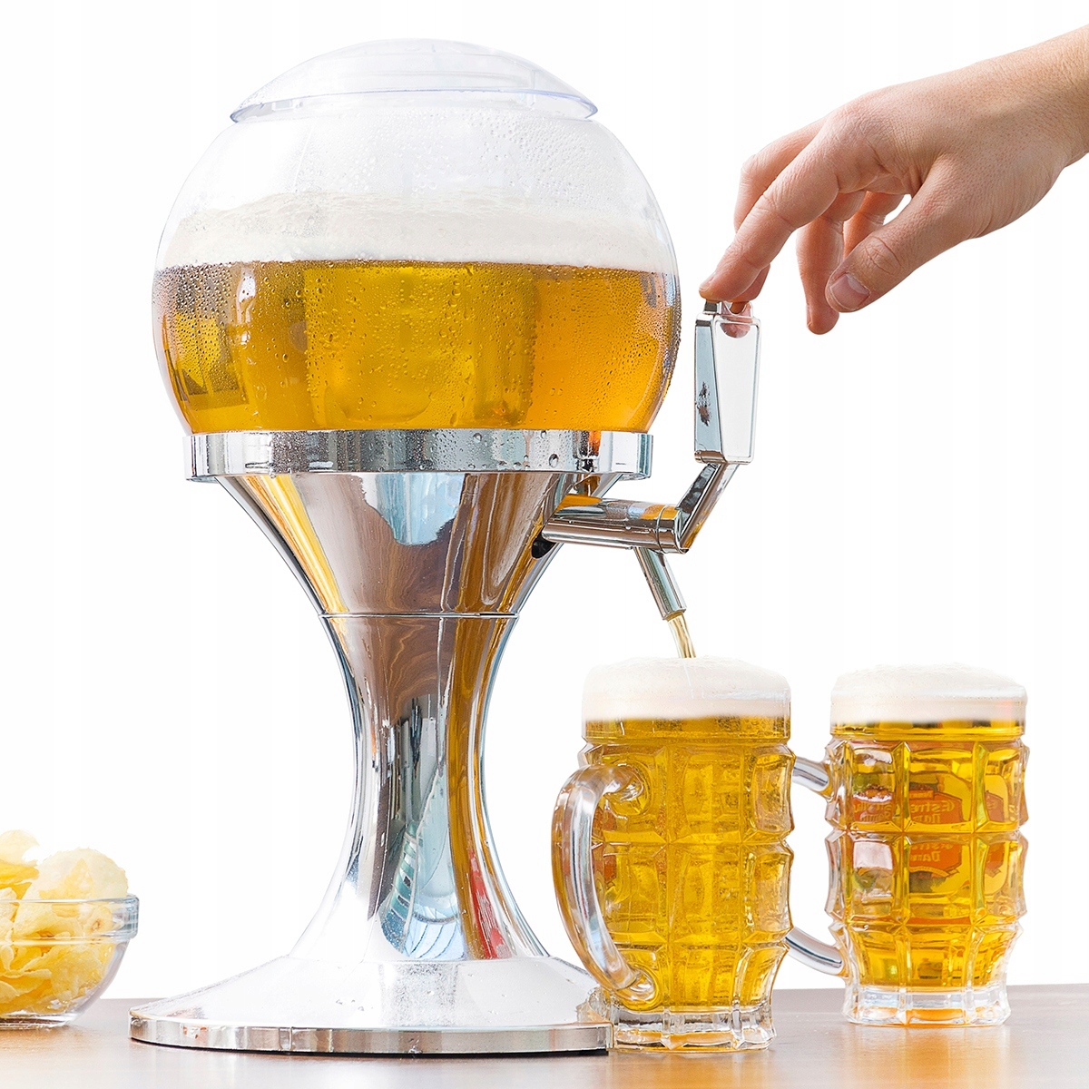Ідеально підходить для охолодження та розливу пива чи інших напоїв, які зберігають потрібну температуру завдяки внутрішньому контейнеру для льоду, який охолоджує без утворення конденсату. Вбудований кран дозволяє легко і зручно наливати напої - тепер ніхто не залишиться з порожньою кухлем.