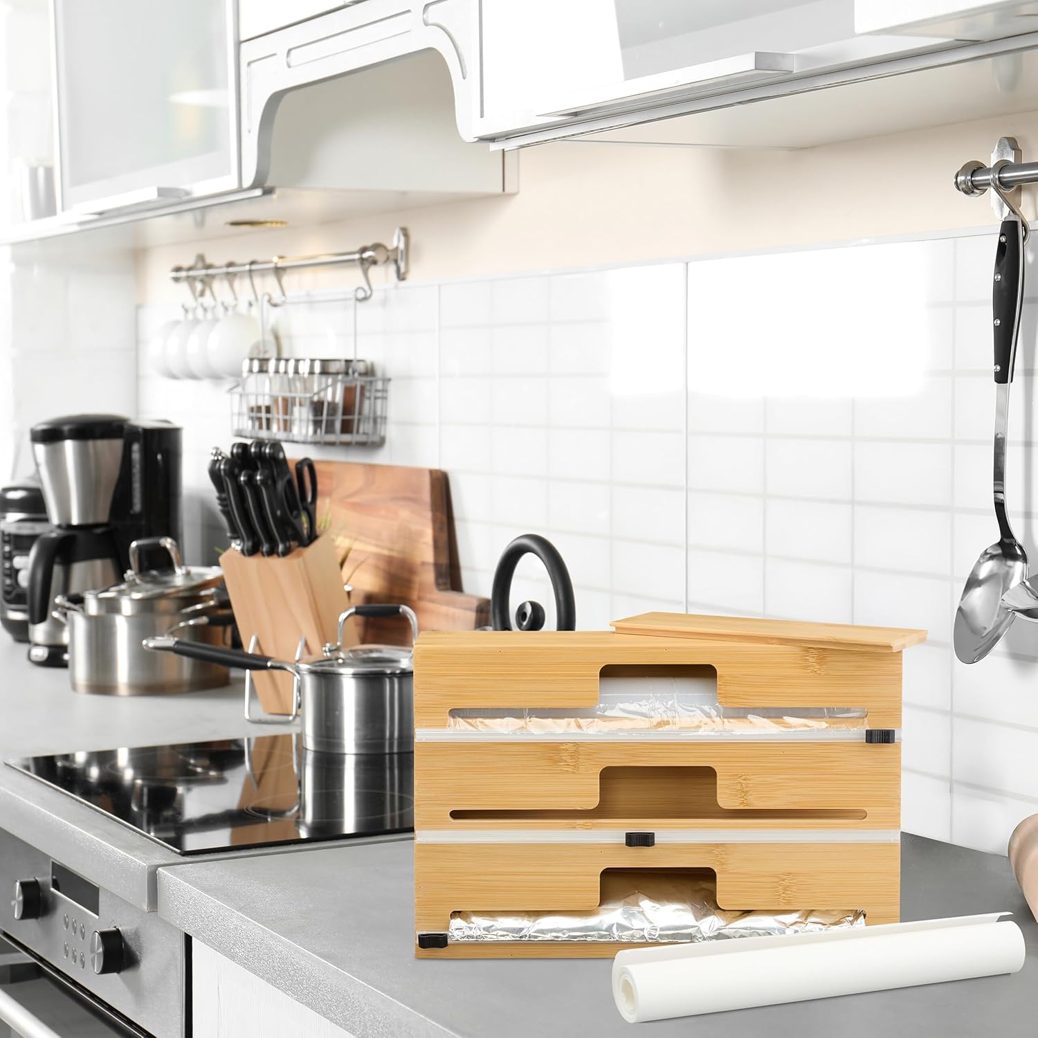 ✅ Велика місткість – вміщує рулони шириною до прибл. 31,5 см – вміщує стандартні великі рулони, тож вам не потрібно змінювати спосіб зберігання продуктів із фольги.