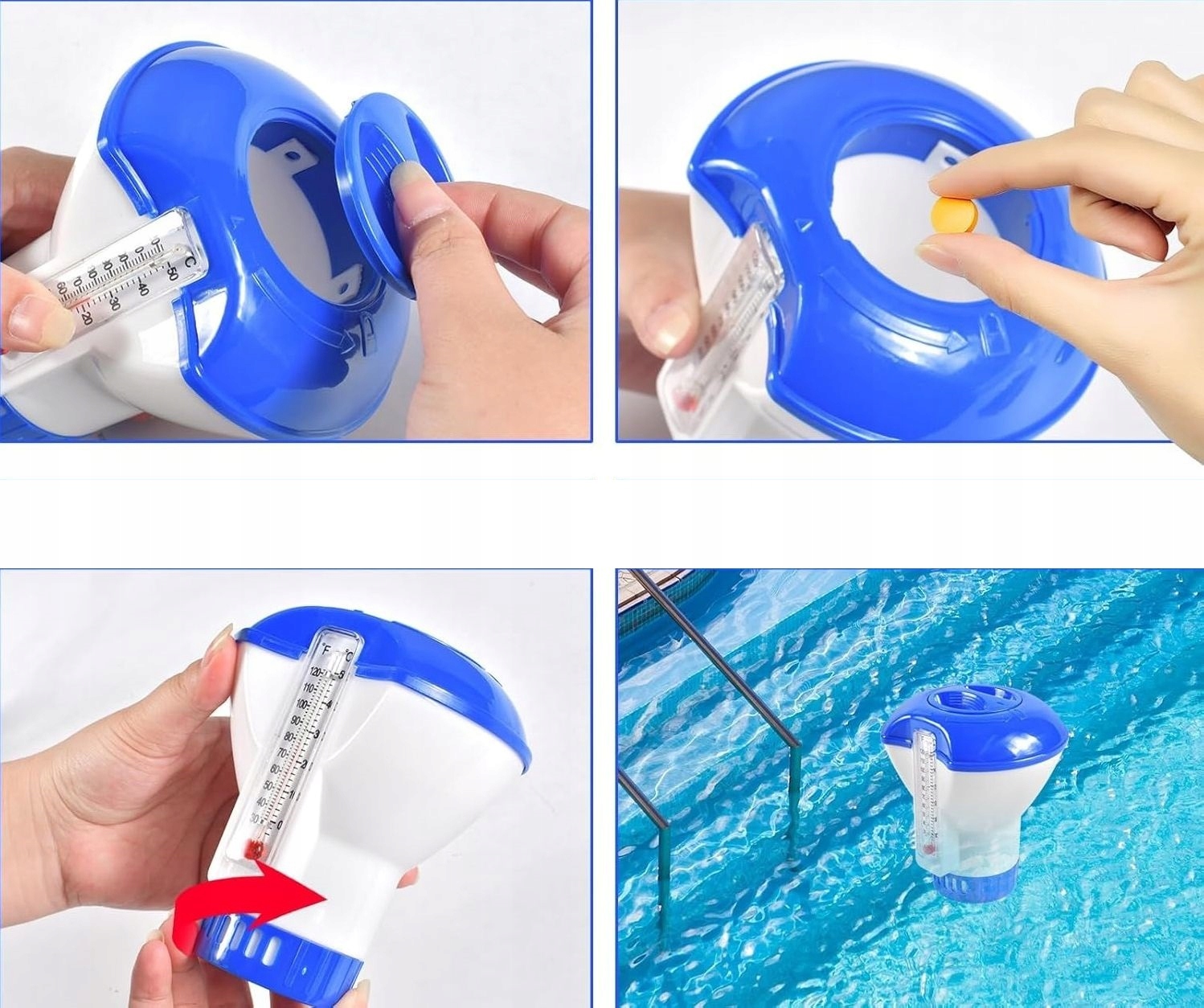 Диспенсер для басейну з термометром - чиста вода та повне контроль температури! 4 Це незамінний аксесуар, який піклується про відповідний рівень дезінфекції води, і в той же час дозволить вам перевіряти його температуру в будь -який час.
