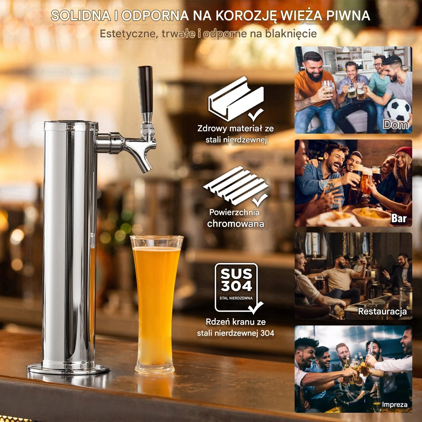 Професійна Башта пива з одним краном - ідеальне рішення для домашніх кегераторів, барів, ресторанів та гастрономічних закладів . Виготовлений з високої якості нержавіючої сталі , забезпечує довговічність, корозійну стійкість та естетичний вигляд. Завдяки попередньо зібраному кабелю та суцільній системі фіксації , установка швидка і неприємна.