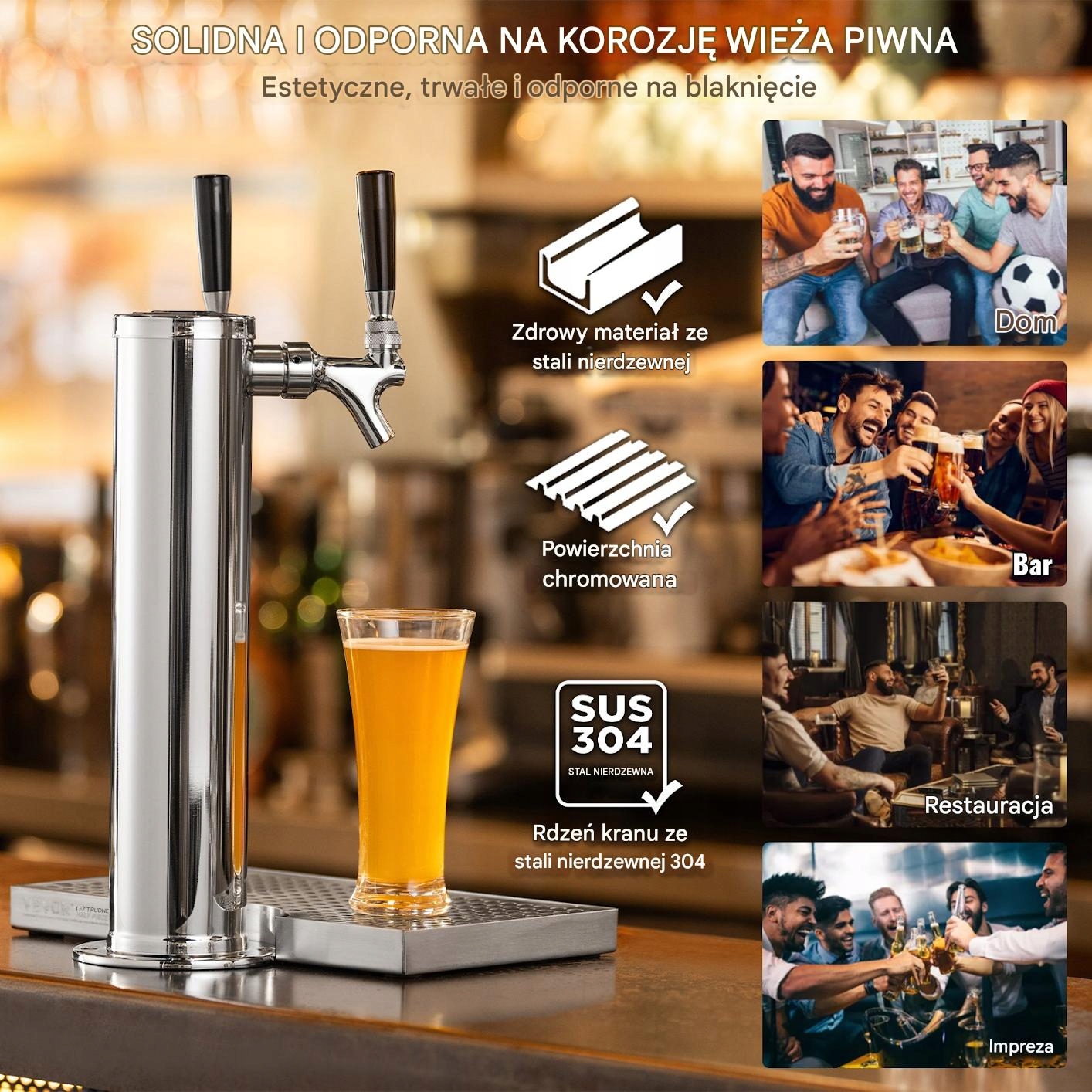 Професійна Башта пива з двома кранами - ідеальне рішення для домашніх кегераторів, барів, ресторанів та гастрономічних закладів . Виготовлений з високої якості нержавіючої сталі , забезпечує довговічність, корозійну стійкість та елегантний зовнішній вигляд. Завдяки попередньо зібраному кабелю та суцільній системі фіксації , установка швидка і неприємна.