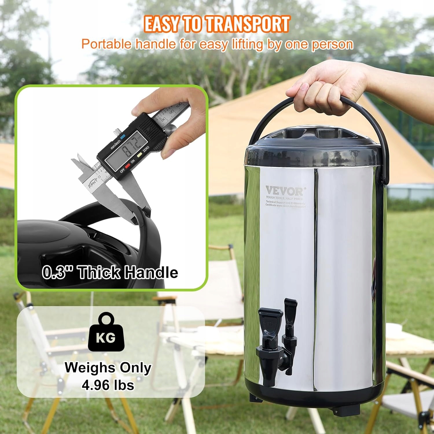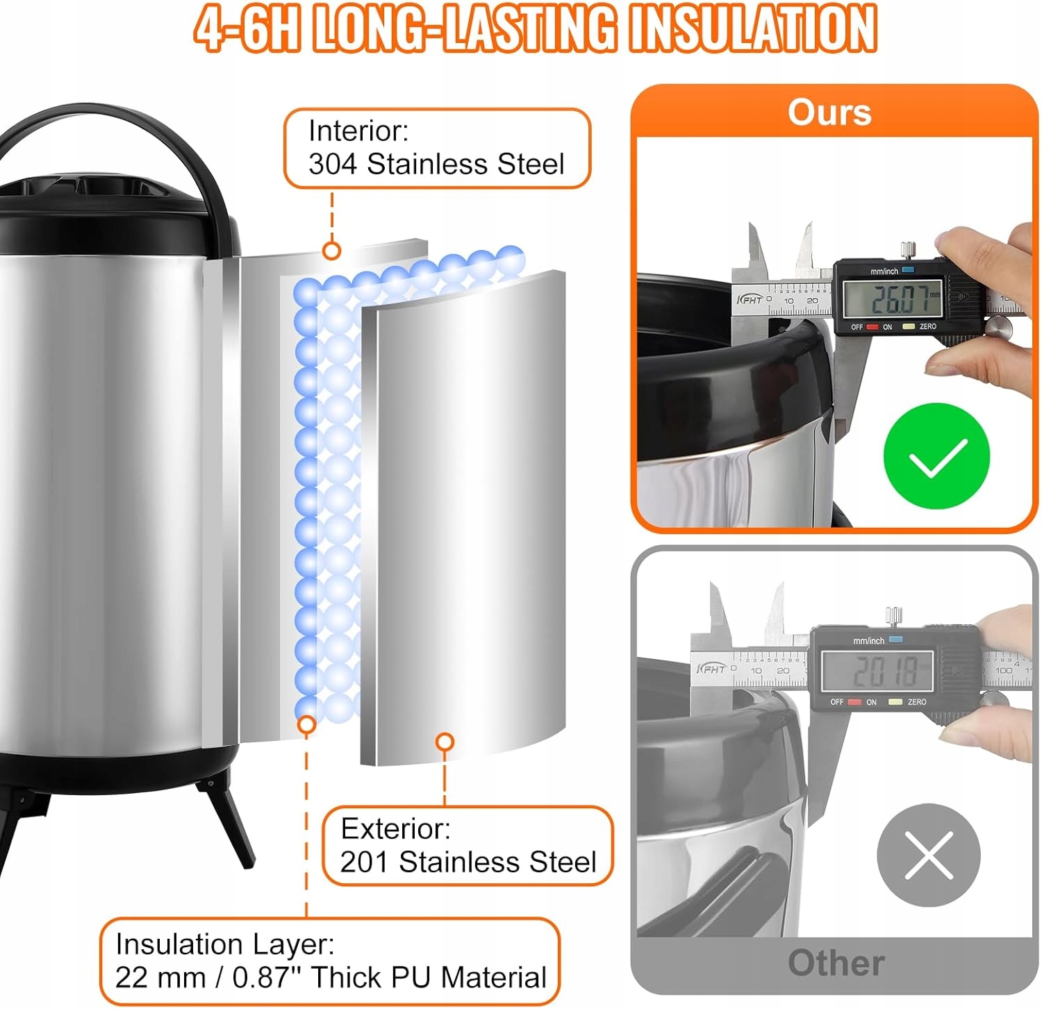 - Легкий транспорт: наш дозатор теплового напою виготовлений з легкої нержавіючої сталі і важить лише 4,96 фунта (2,25 кг). Армована, ергономічна ручка з товщиною 0,3 дюйма (8 мм) ідеально пристосована до пальців, тому ви можете легко підняти його і перемістити в будь -яке місце.