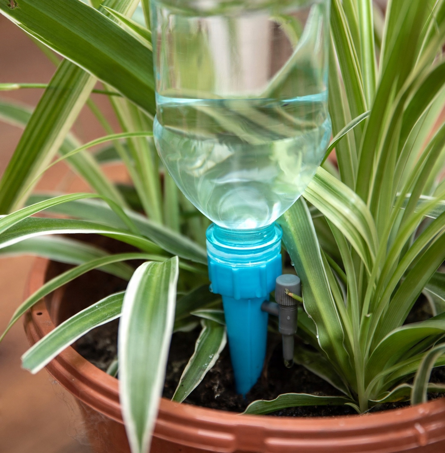 4 корисно в кожному будинку чи компанії. Ви легко забезпечите належну гідратацію для своїх домашніх рослин під час тривалої відсутності, , наприклад Вирушаючи у відпустку, делегації тощо. кінчику зрошення слід відрізати, щоб дозволити потік води - чим більший отвір, тим швидше вода витікає. Зрошення дозволить в середньому протягом 2 тижнів зрошення, використовуючи пляшку 500 мл. Ви можете легко виливати/виливати у добриво у воду.