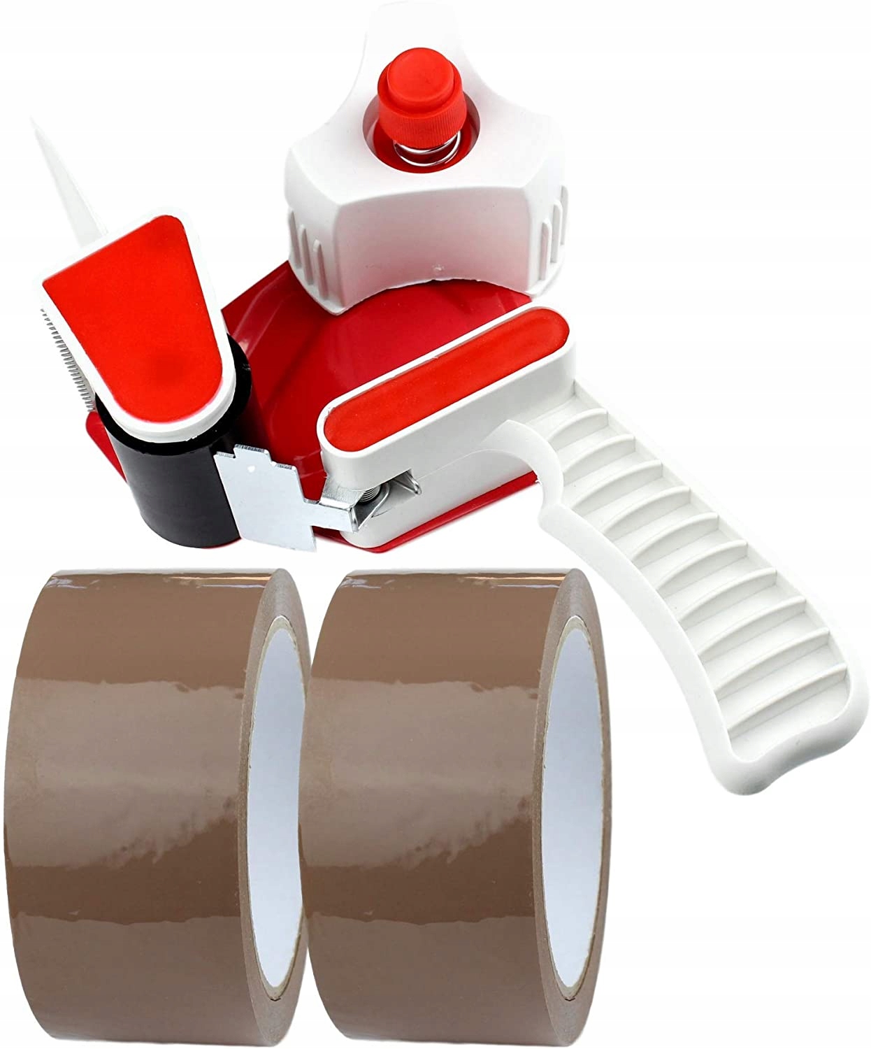 Ручний дозатор для швидкого розмотування, наклеювання та розрізання пакувальних стрічок шириною до 50 мм, ідеально підходить для домашнього, офісного чи складського використання. Дуже зручний і зручний у використанні. Пропонується в економічному наборі з двома рулонами міцної коричневої стрічки.