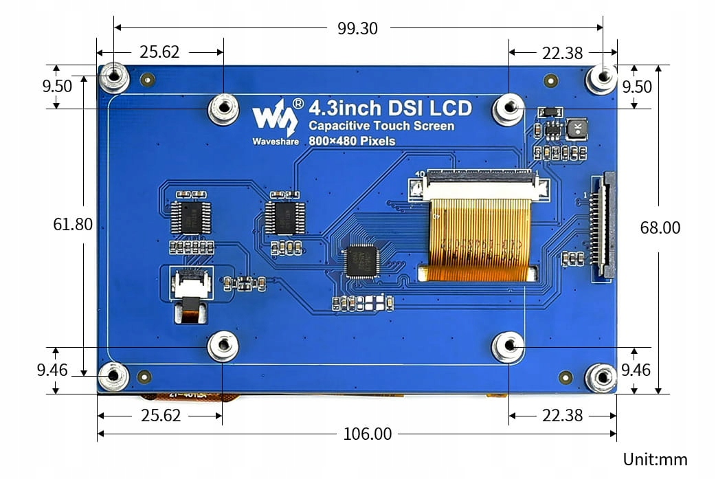 ⭐4,3-дюймовий дисплей IPS 800x480 MPI DSI та ємнісна сенсорна панель, присвячена Raspberry Pi.