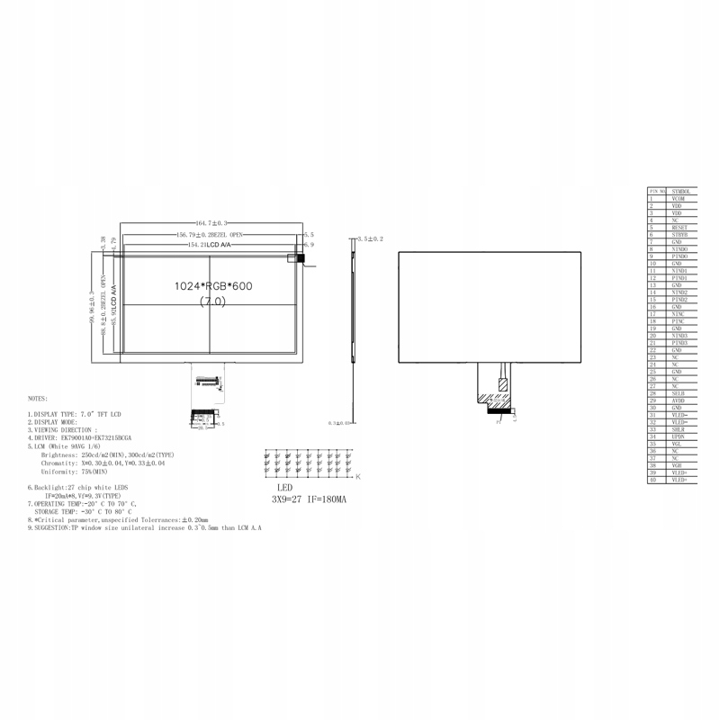 7" 1024x600 TFT LCD дисплей з контролером для Raspberry Pi - специфікація: