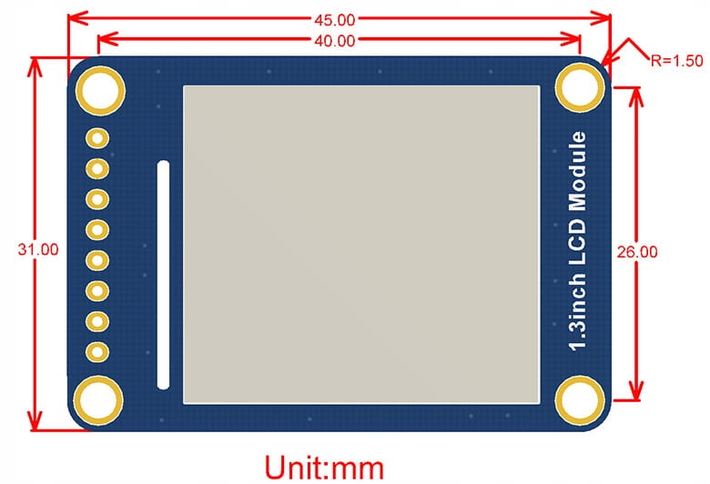 Модуль із кольоровим IPS-дисплеєм 1,3 дюйма та роздільною здатністю 240x240 пікселів, який працює через шину SPI.