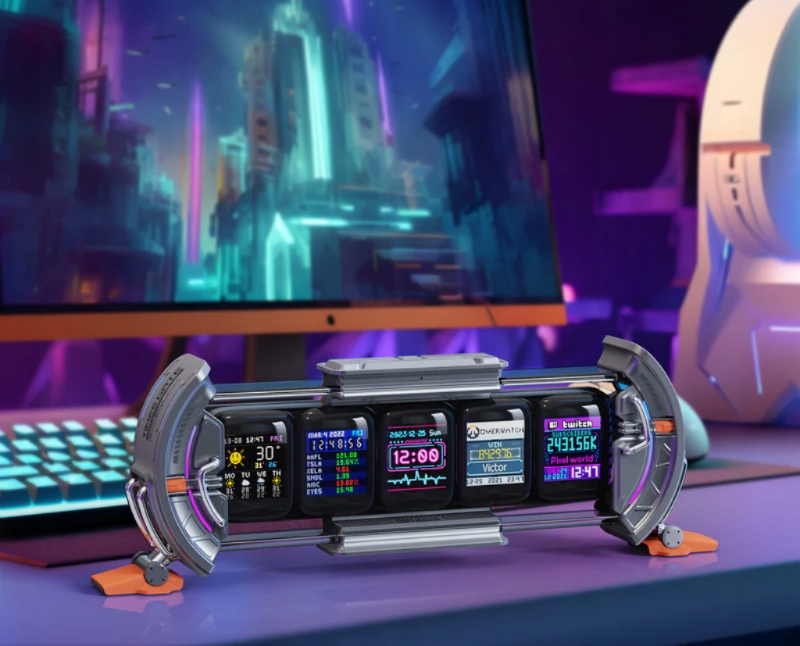 Times Gate натхненний майбутнім технологій і складається з 5 повноколірних РК-дисплеїв. Ця футуристична світлова прикраса додасть кольору вашим ігровим станціям і робочому простору, а також запропонує багато цікавих і корисних функцій.