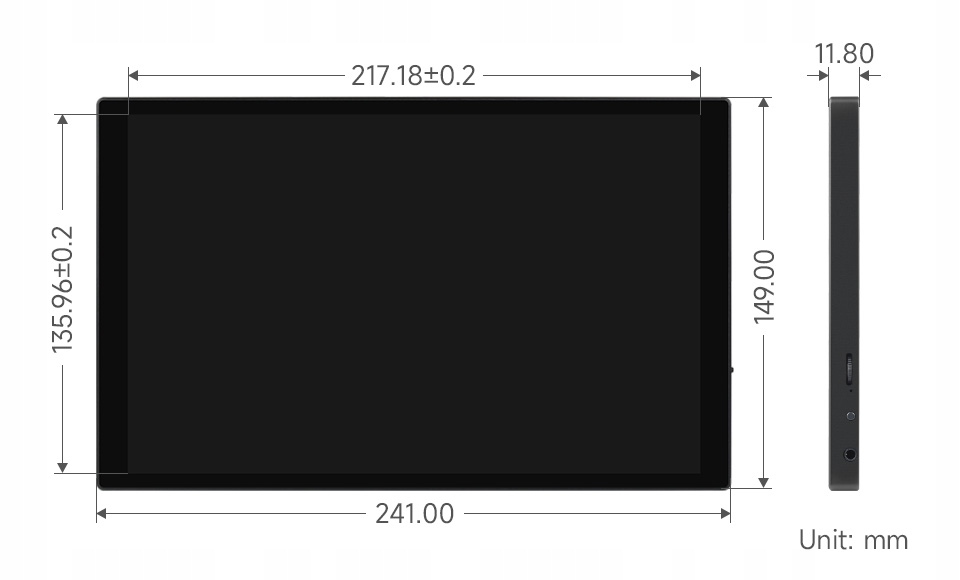 - ✅ Display dimensions: 228.6 × 143.0 mm
