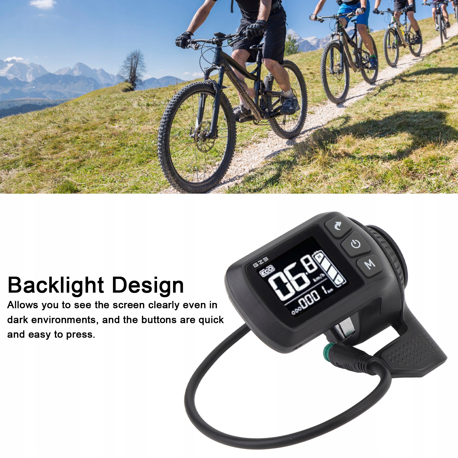 Функція:1. Покращена видимість: цей РК-дисплей для електровелосипеда дозволяє легко переглядати дані на панелі, забезпечуючи більш інтуїтивне відображення вашого стану на великому екрані. Підсвічування забезпечує чітку видимість навіть у темному середовищі, завдяки зручним і чуйним кнопкам для легкого керування.