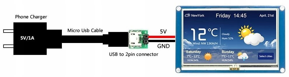 Завдяки зовнішньому джерелу живлення 8–26 В постійного струму Foca Max забезпечує стабільне джерело живлення та зручність зв’язку USB із TTL для всіх серій і розмірів дисплеїв Nextion HMI.