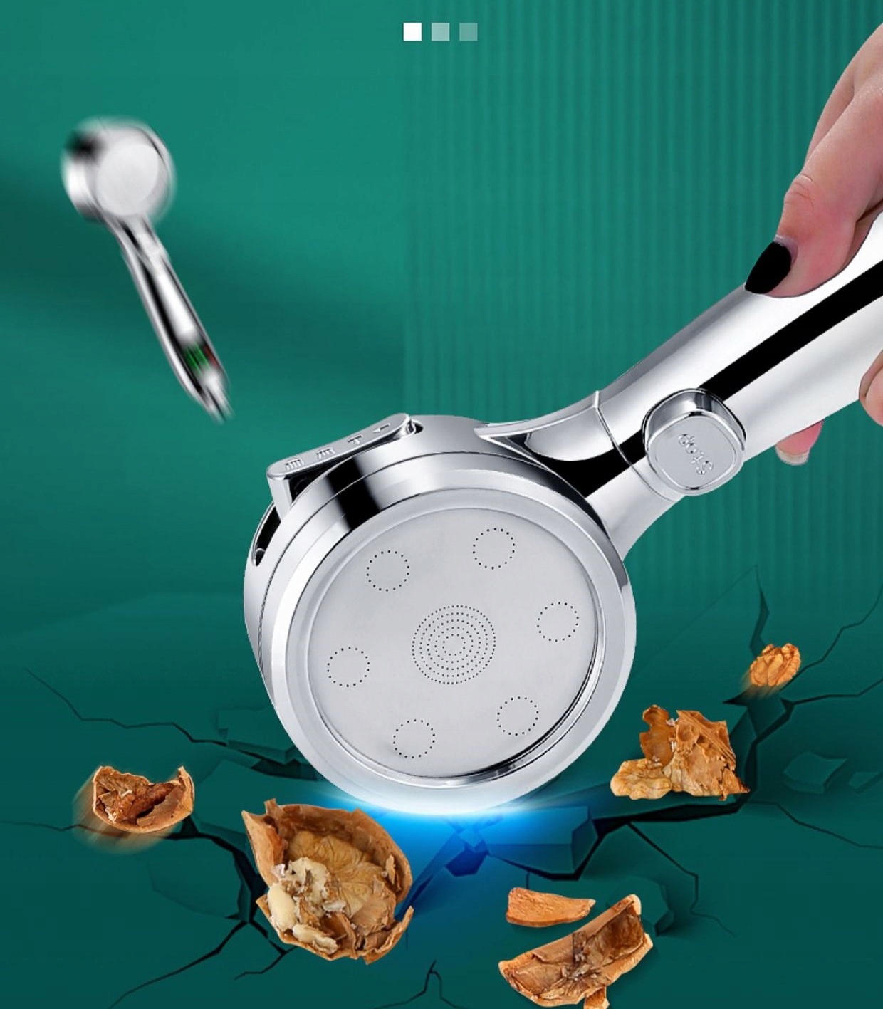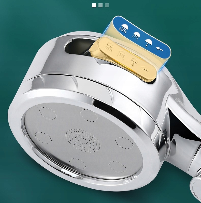душової головки з функцією паузи одним клацанням має функцію збереження води. Кнопка особливо зручна і корисна, коли ви миєте мило, гель для душу або волосся, і ви не можете відкрити очі. Завдяки дизайну перемикача однією кнопкою вам не потрібно кілька разів відкривати кран під час купання під душем, що дозволяє уникнути зайвих відходів води.