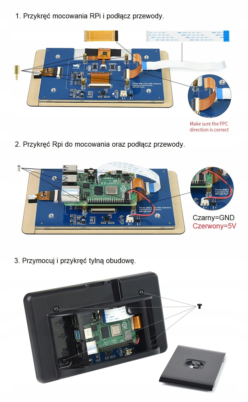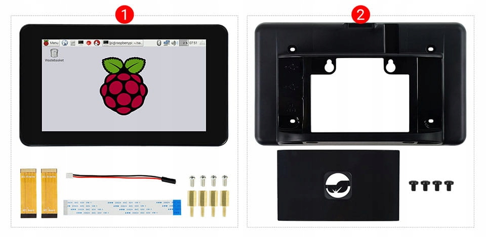 7-дюймовий ємнісний сенсорний дисплей для Raspberry Pi, DSI, 800×480 із вбудованою 5-мегапіксельною камерою та корпусом
