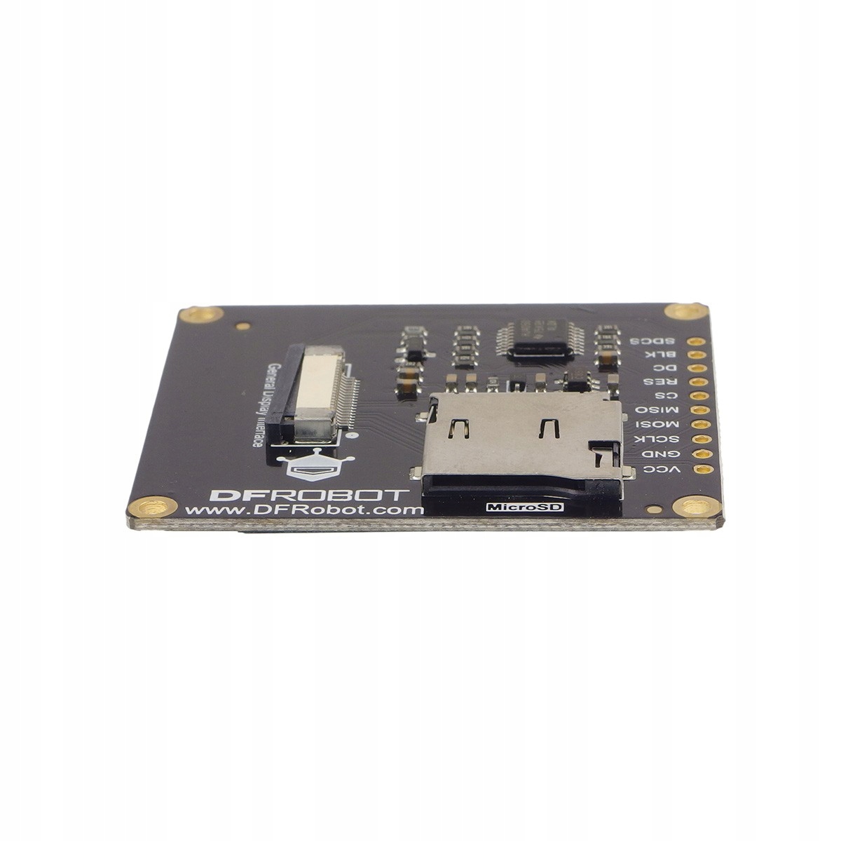 IPS кольоровий LCD дисплейний модуль з діагоналлю екрана 1.54" і роздільною здатністю 240x240 пікселів. Дисплей має вбудований драйвер ST7789 і спілкується через інтерфейс SPI. Дисплей також може працювати через порт GDI (General Display Interface). Додатково модуль оснащений слотом для карт microSD. Працює з системами, що живляться від 3,3 В і 5 В, включаючи: Arduino, ESP32, ESP8266 і FireBeetle M0.
