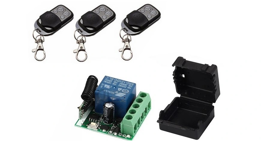 ЛІНІЙНИЙ РАДІОПЕРЕМИКАЧ 12 В ДИСТАНЦІЙНОГО КЕРУВАННЯ з 3 пультами дистанційного керування (