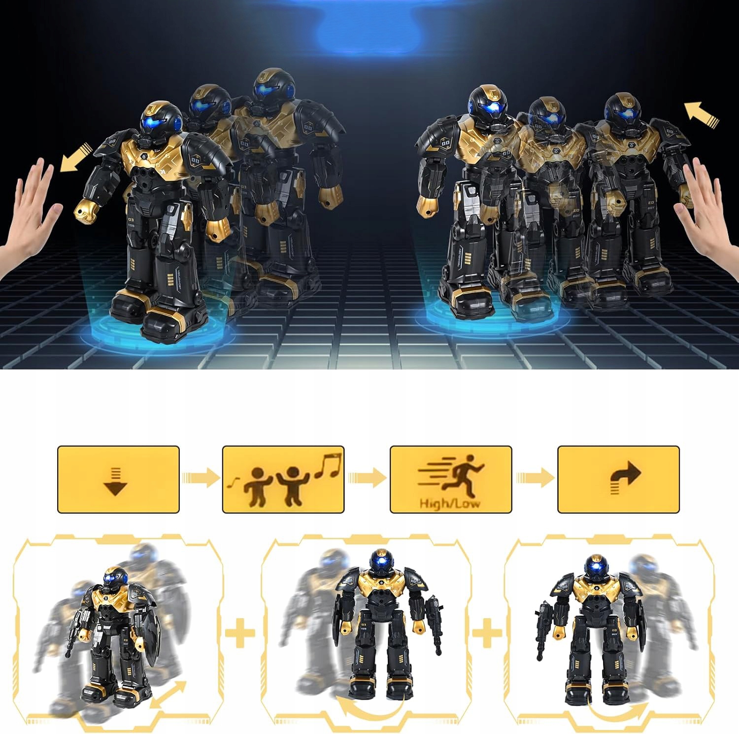 🤖Робот з дистанційним керуванням: робот із дистанційним керуванням постачається з дистанційним керуванням, щитом і пістолетом. Робот більший за інших роботів і імітує звук кулемета. Отже, коли двоє дітей купують цього робота, вони можуть влаштувати захоплюючі бої! Робот також має світлодіодні очі, які дуже круті вночі, і ця іграшка дуже сподобається дітям!🤖