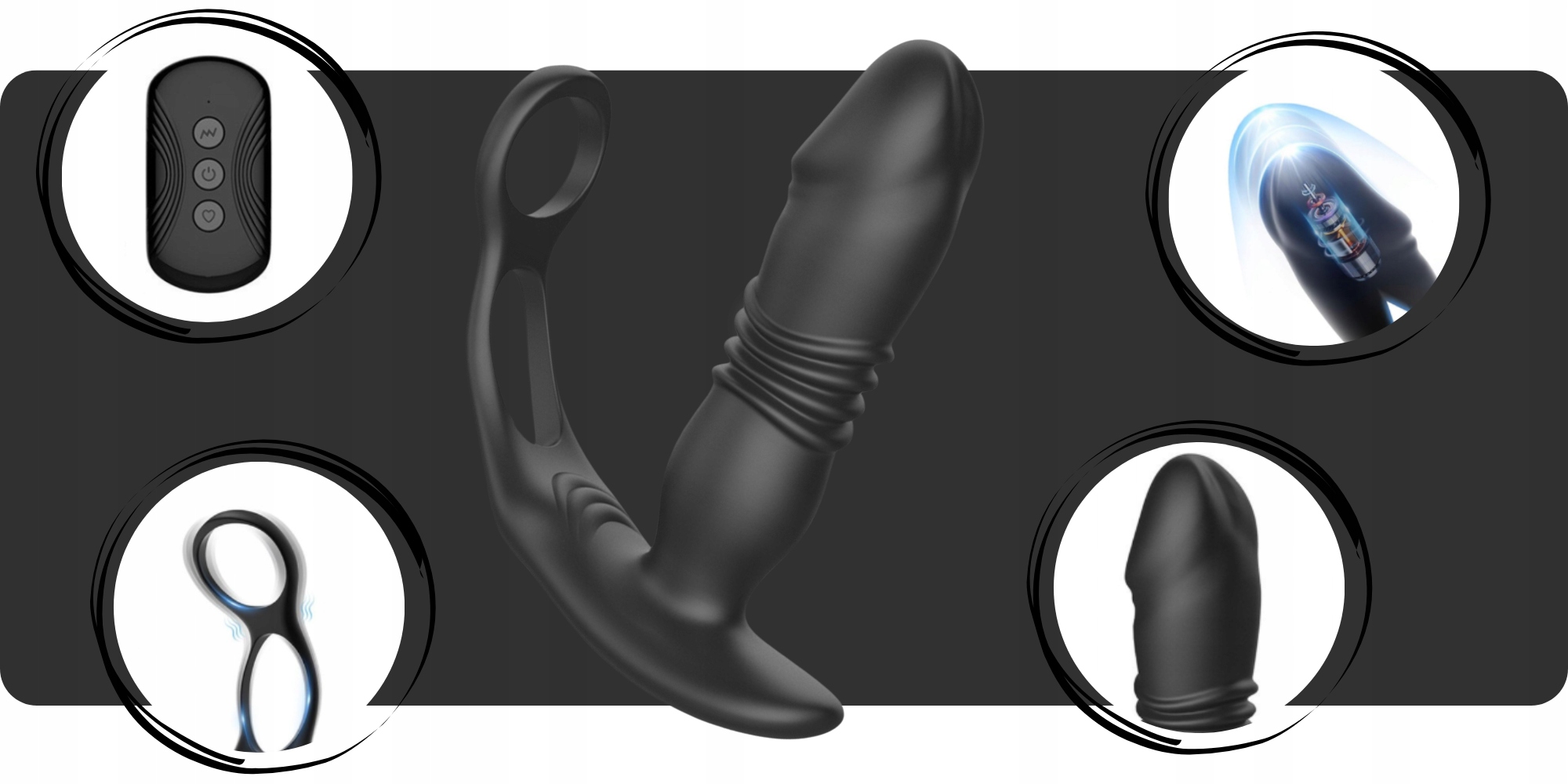 ZDALNIE STEROWANY MASAŻER PROSTATY POSUWISTY Z PILOTEM + RINGI JĄDRA PENIS