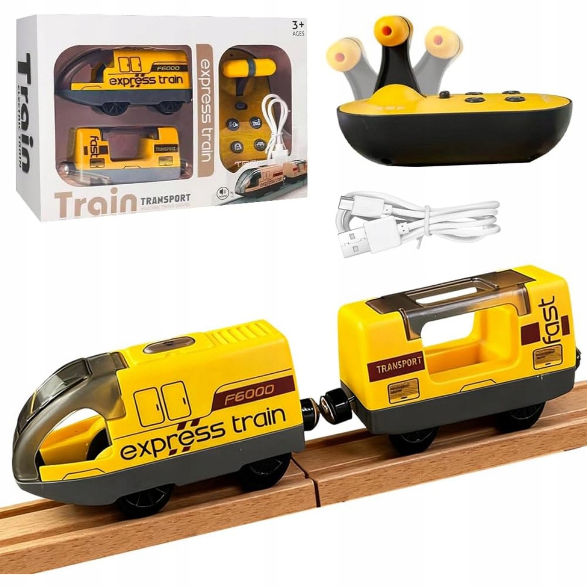 🚘Електропоїзд на дерев'яних рейках, на дистанційному керуванні, з 4 звуковими та світловими ефектами, для дітей 3, 4, 5, 6+ років, сумісний (жовтий)🚘